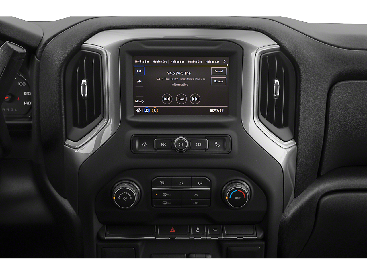 - Audio system, Chevrolet Infotainment 3 system 7" diagonal color touchscreen, AM/FM stereo. Additional features for compatible phones include: Bluetooth® audio streaming for 2 active devices, voice command pass-through to phone, wired Apple CarPlay and Android Auto capable.